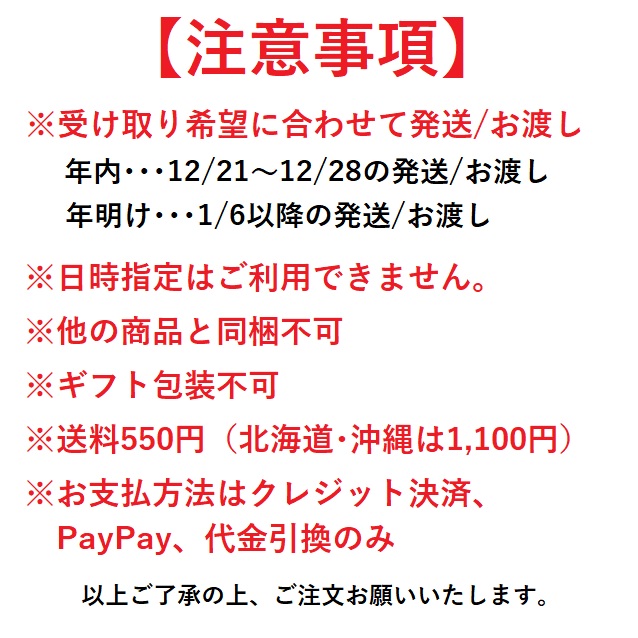 年内(12/21~12/28の発送、お渡し)
